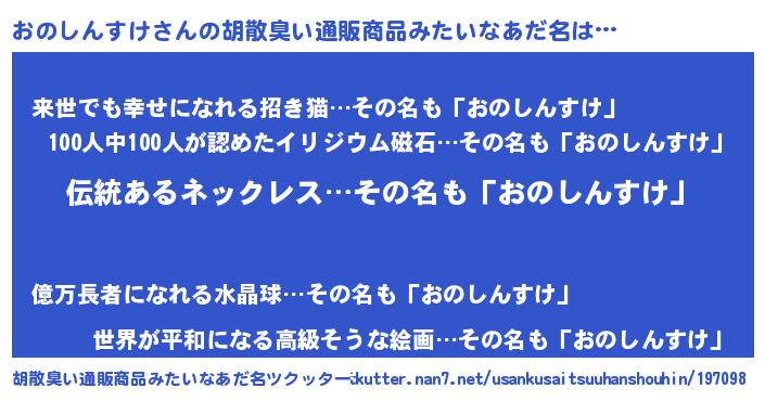 | ヘコむあだ名 | 『おの太郎』『おのしんすけ(小並感)』 |