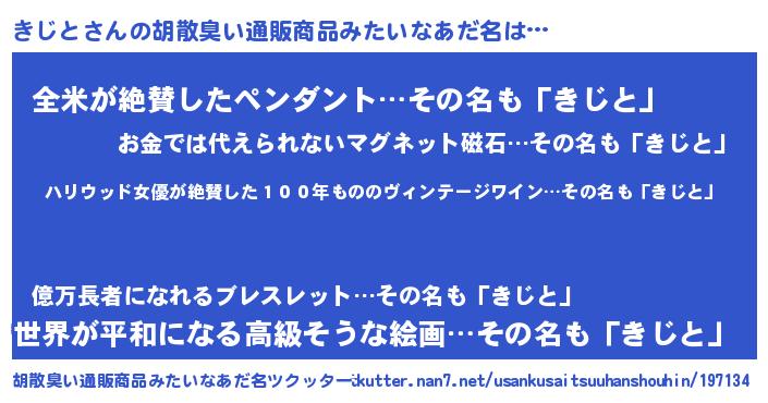| 意味不明あだ名 | 『住所不定無職きじと(10歳)』 |