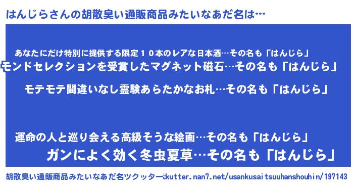 | 意味不明あだ名 | 『ペロリンはんじら』『自称はんじら』 |