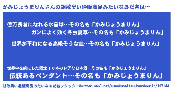 | 欧米人風あだ名 | 『かみじょうまりんクリステル』 |
