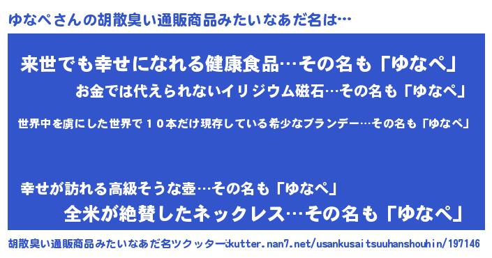 | 意味不明あだ名 | 『住所不定無職ゆなぺ(74歳)』 |