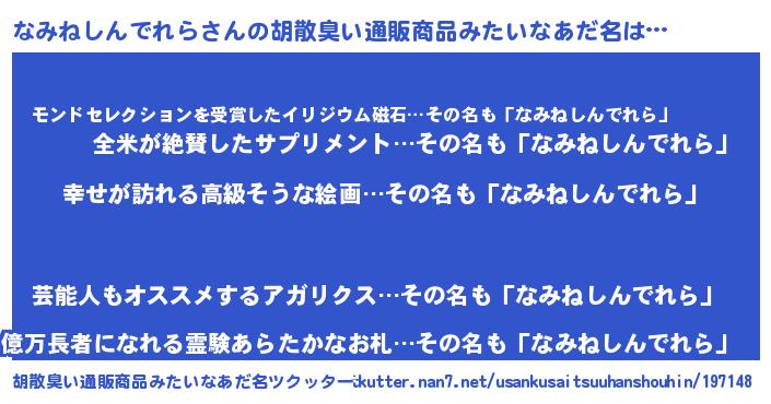 なみねしんでれらさんの胡散臭い通販商品みたいなあだ名をツクッター!