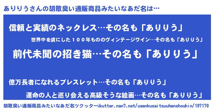 | 意味不明あだ名 | 『永久保存ありりう』 |
