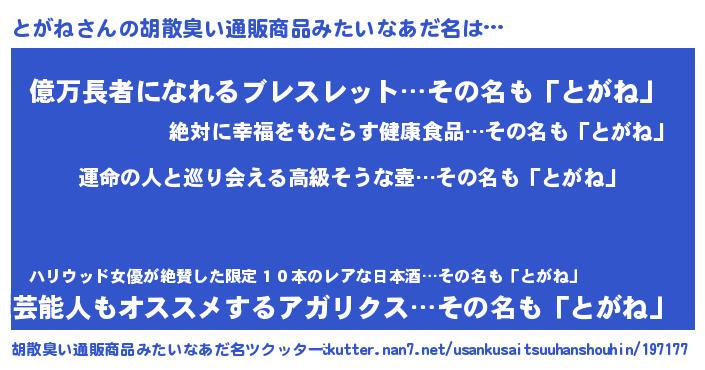 | ヘコむあだ名 | 『酢こんぶ』『とがっふぃ~』 |