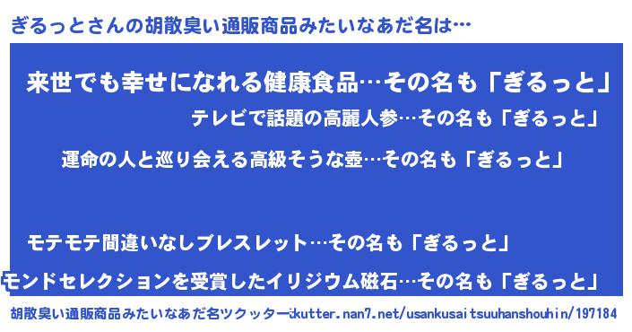 | ヘコむあだ名 | 『酢こんぶ』『ぎるっと(小並感)』 |