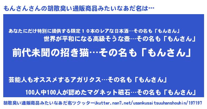 | ヒーロー風カッコイイあだ名 | 『ネオモンサン』『仮面モンダー』 |