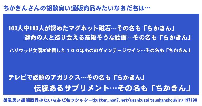 | 意味不明あだ名 | 『住所不定無職ちかきん(8歳)』 |