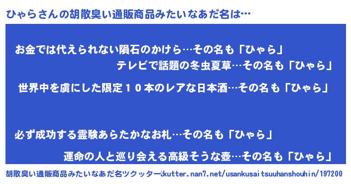 | 意味不明あだ名 | 『住所不定無職ひゃら(50歳)』『自称ひゃら』 |
