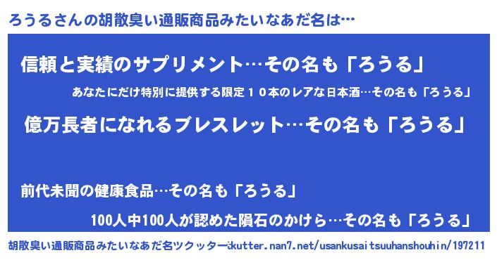 | 肩書あだ名 | 『ろうる社長』『ろうる団長』 |