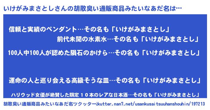 いけがみまさとしさんの胡散臭い通販商品みたいなあだ名をツクッター!