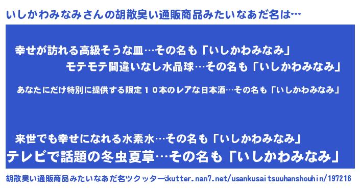 | 意味不明あだ名 | 『住所不定無職いしかわみなみ(65歳)』 |