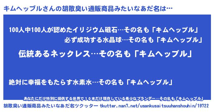 | 意味不明あだ名 | 『とにかく怪しいキムヘッブル』 |