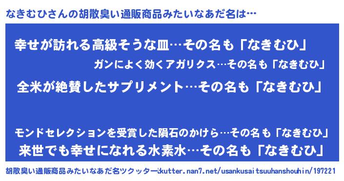 | 意味不明あだ名 | 『とにかく怪しいなきむひ』 |