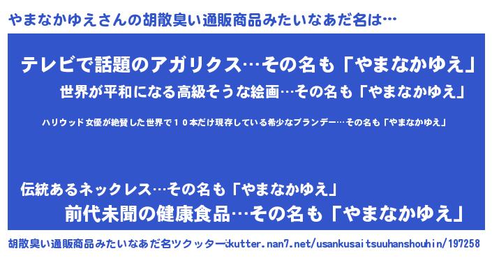 | 意味不明あだ名 | 『住所不定無職やまなかゆえ(95歳)』 |