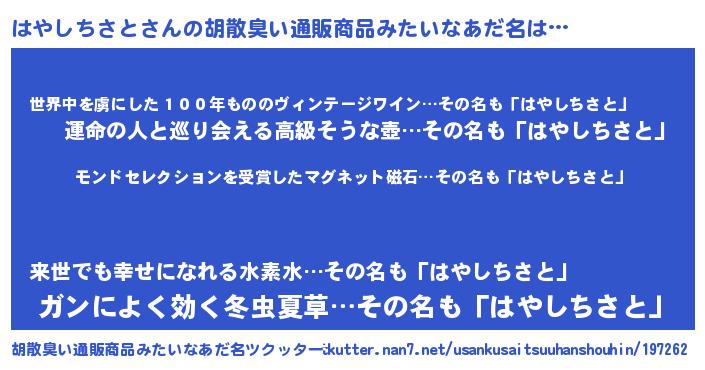 | ヒーロー風カッコイイあだ名 | 『慈愛の使者はやしちさと』 |