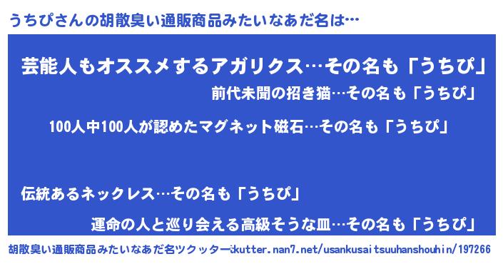 | ヒーロー風カッコイイあだ名 | 『正義の使者うちぴ』『最強戦士ウチピ』 |