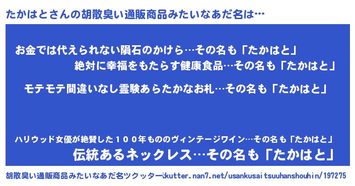 | ヘコむあだ名 | 『たかっふぃ~』『たかっぺ』 |