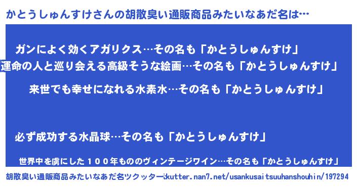 | 意味不明あだ名 | 『永久保存かとうしゅんすけ』 |