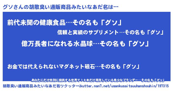 | ヒーロー風カッコイイあだ名 | 『スーパーグソ』『ネオグソ』 |
