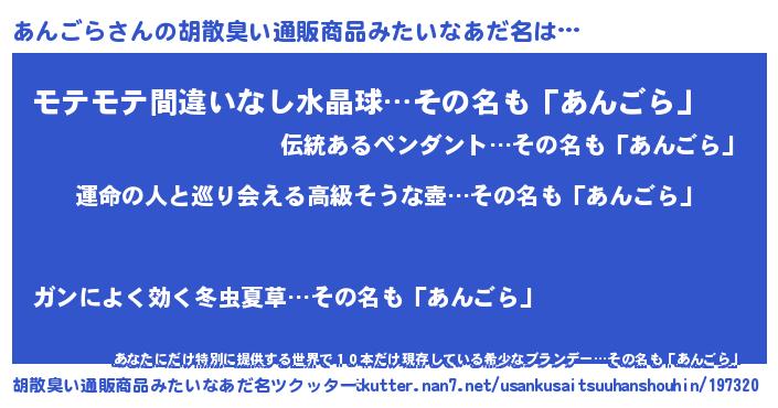 | 意味不明あだ名 | 『あんごらフォーエバー』『自称あんごら』 |