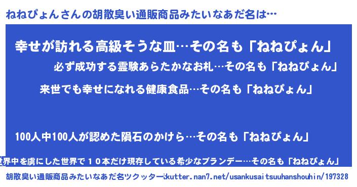 | 意味不明あだ名 | 『永久保存ねねぴょん』 |