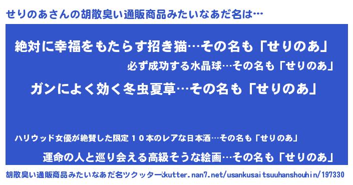 | 恥ずかしいあだ名 | 『セリノアデラックス』『せりちん』 |