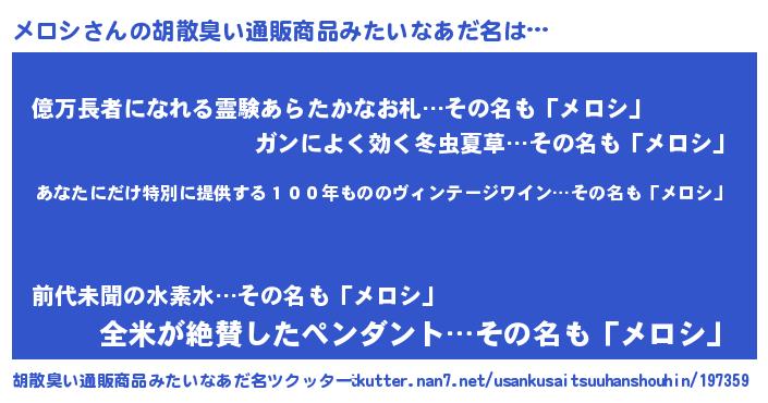 | 意味不明あだ名 | 『住所不定無職メロシ(8歳)』『自称メロシ』 |