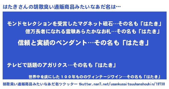 | 意味不明あだ名 | 『とにかく怪しいはたき』『自称はたき』 |