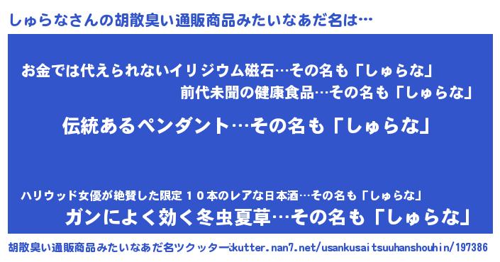 | ヘコむあだ名 | 『しゅっちょ』『しゅらな(笑)』 |
