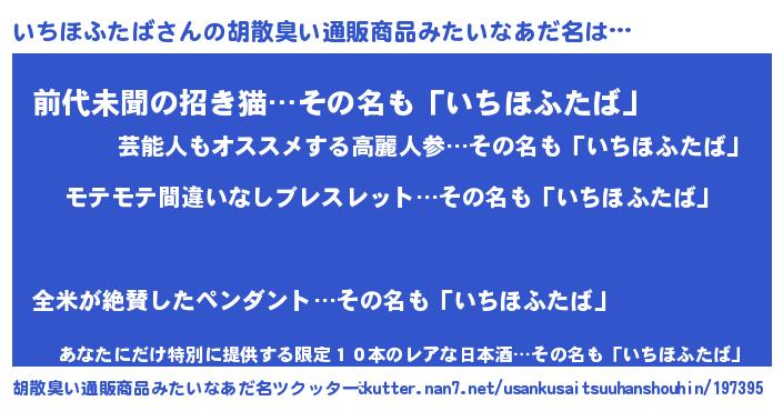 | ヘコむあだ名 | 『いちにー』『いちほふたば(笑)』 |