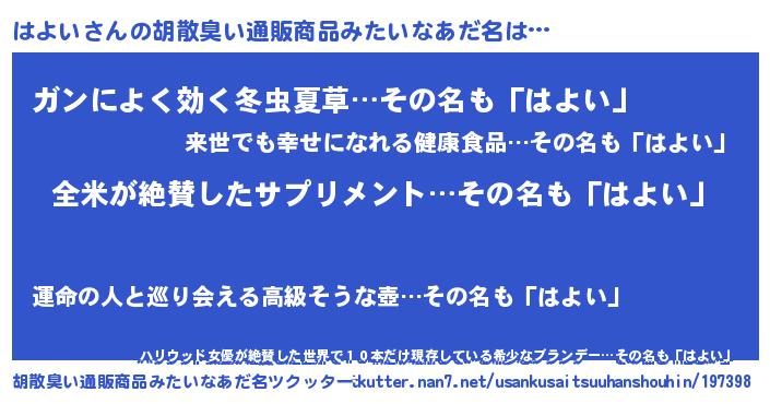 はよいさんの胡散臭い通販商品みたいなあだ名をツクッター!