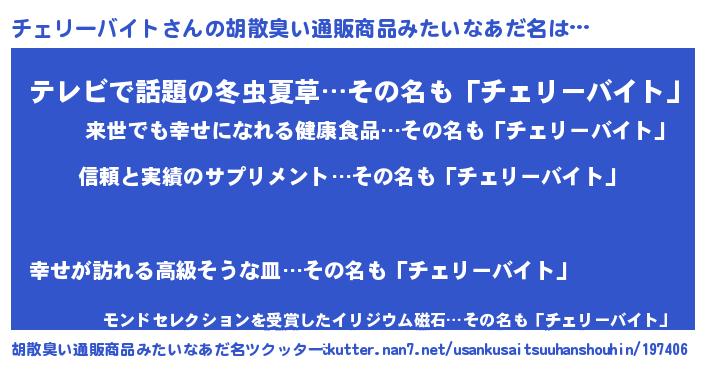 | 意味不明あだ名 | 『とにかく怪しいチェリーバイト』 |