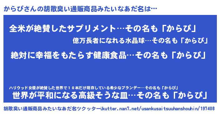 | 男性向けラノベタイトル風あだ名 | 『カラピスレイヤー』 |