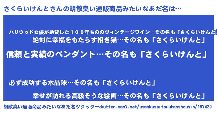 | 男性向けラノベタイトル風あだ名 | 『ダンジョンにさくらいけんとを求めるのは間違っているだろうか』 |