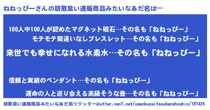 | ヒーロー風カッコイイあだ名 | 『ネオネネッピー』『愛の使者ねねっぴー』 |