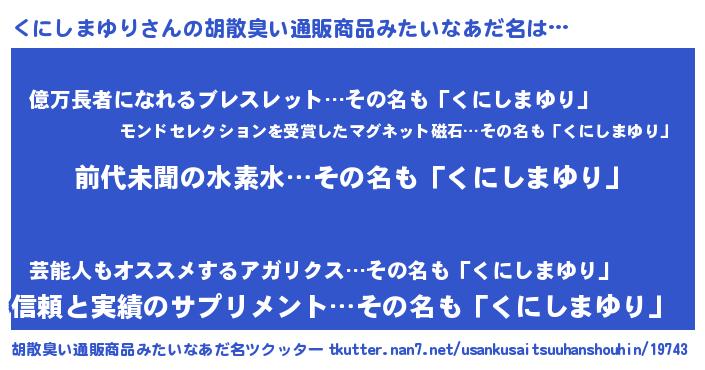 | 可愛いあだ名 | 『くーみん』『くにしまゆりママ』 |