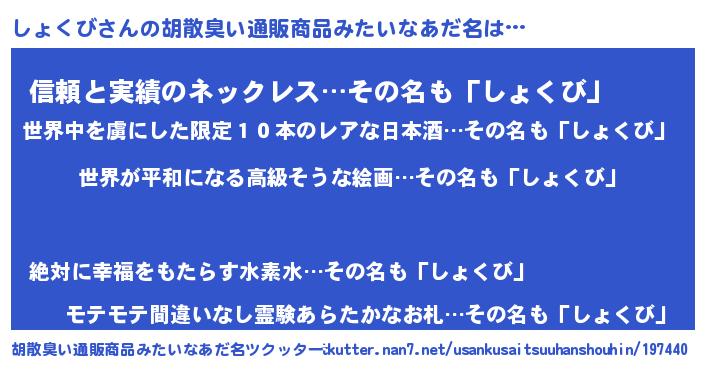 | ヘコむあだ名 | 『豆乳』『しょっぺ』『しょっふぃ~』 |