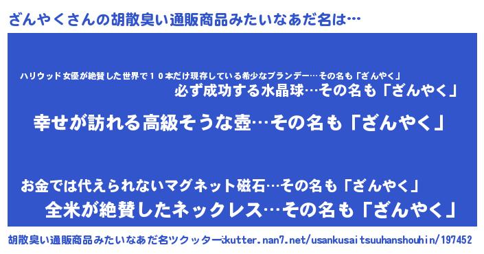ざんやくさんの胡散臭い通販商品みたいなあだ名をツクッター!