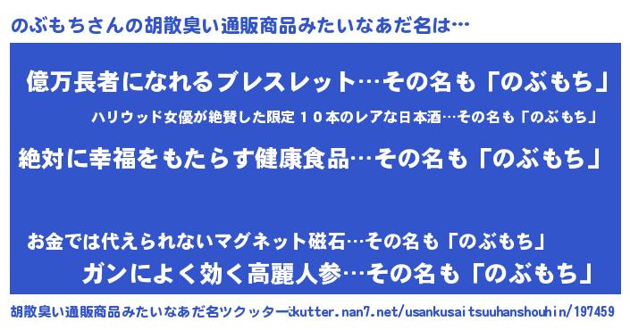 | 男性向けラノベタイトル風あだ名 | 『のぶもちという概念が存在しない退屈な世界 』 |