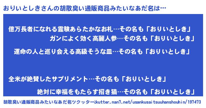 | ヘコむあだ名 | 『酢こんぶ』『おりもー』『おりお』 |