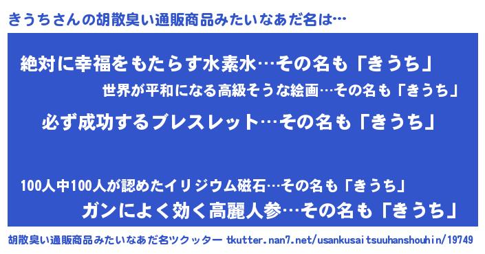 | 恥ずかしいあだ名 | 『プリティーきうち』『きうちん』 |