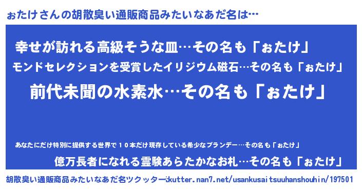 | ファンタジー風あだ名 | 『ォタディッシュ』『カークォタラー』 |