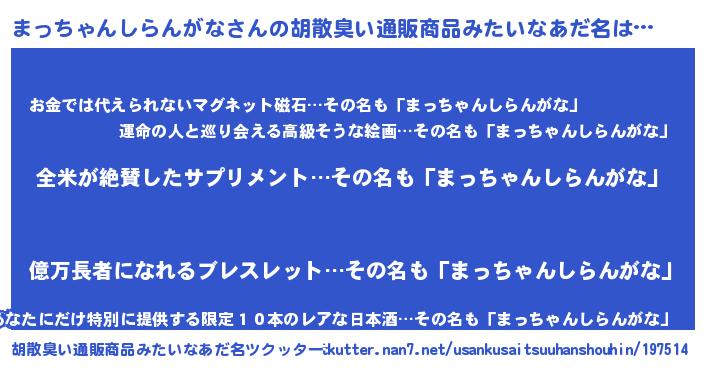まっちゃんしらんがなさんの胡散臭い通販商品みたいなあだ名をツクッター!