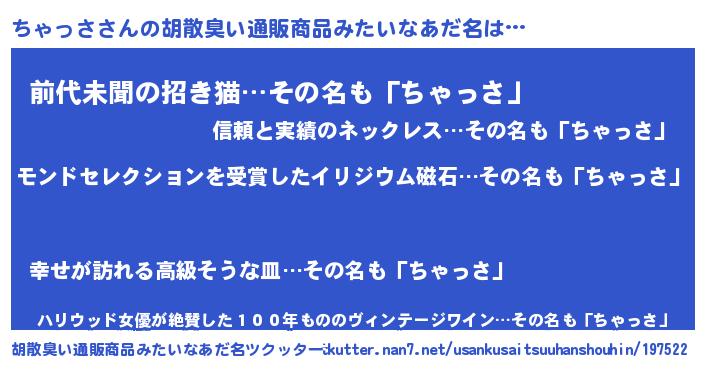 | ヘコむあだ名 | 『ちゃっさ(爆)』『ちゃを』 |