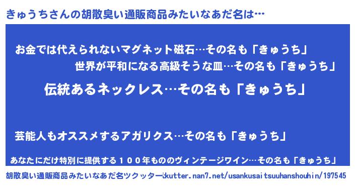 | 意味不明あだ名 | 『とにかく怪しいきゅうち』 |