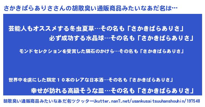 | 意味不明あだ名 | 『眠気覚ましガムさかきばらありさ味』 |