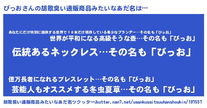 | 意味不明あだ名 | 『とにかく怪しいびっお』『自称びっお』 |