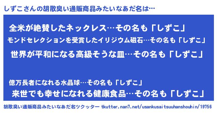 | 意味不明あだ名 | 『しずこフォーエバー』『永久保存しずこ』 |
