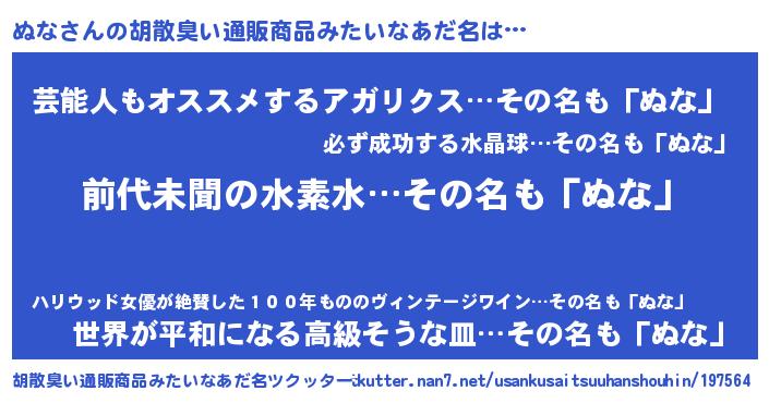 | 欧米人風あだ名 | 『アンジェラ・ぬな』『ダルビッシュぬな』 |