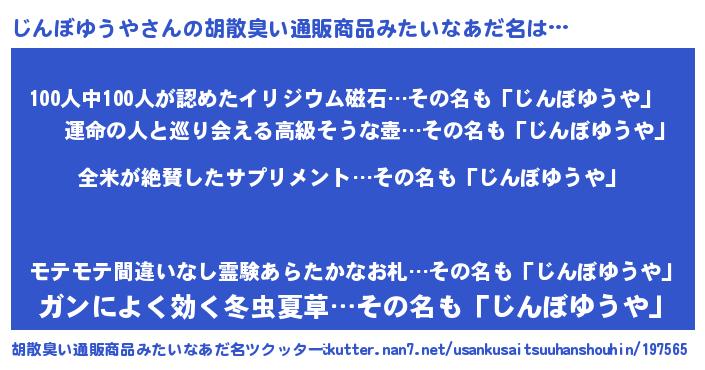 | 男性向けラノベタイトル風あだ名 | 『じんぼゆうやの嫁は女の子じゃないと思った?』 |